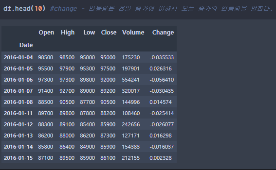 df = fdr.DataReader('011070','2016') #LG이노텍 종목코드 : 011070