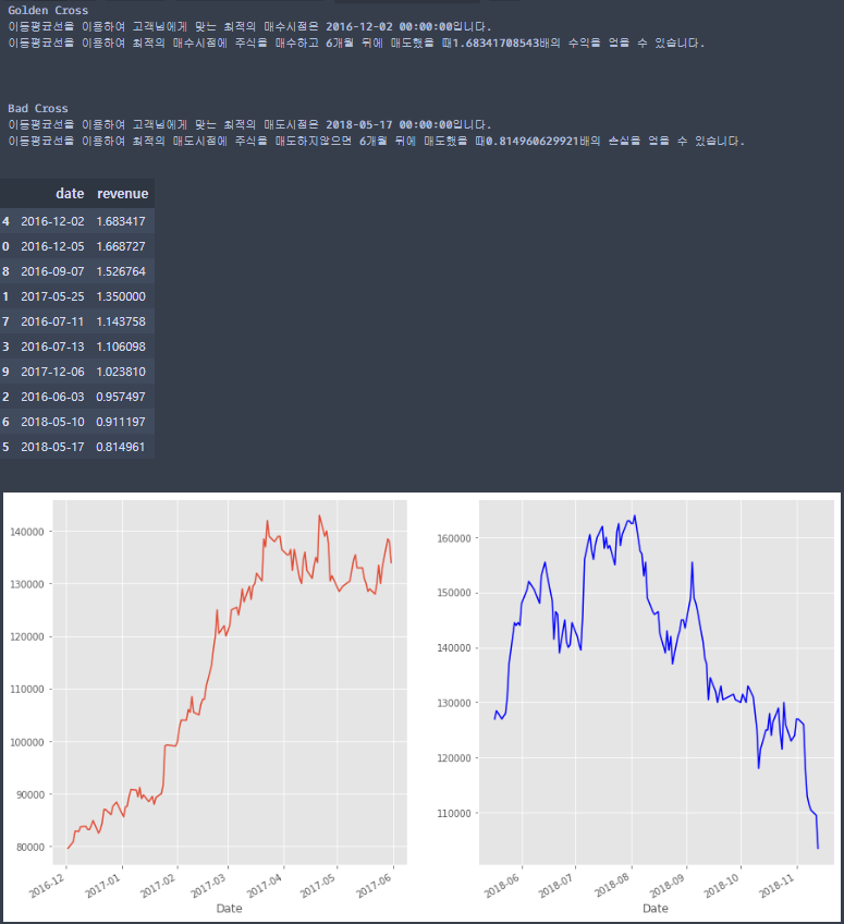 알고리즘 결과 Golden Cross / Bad Cross를 알 수 있다.