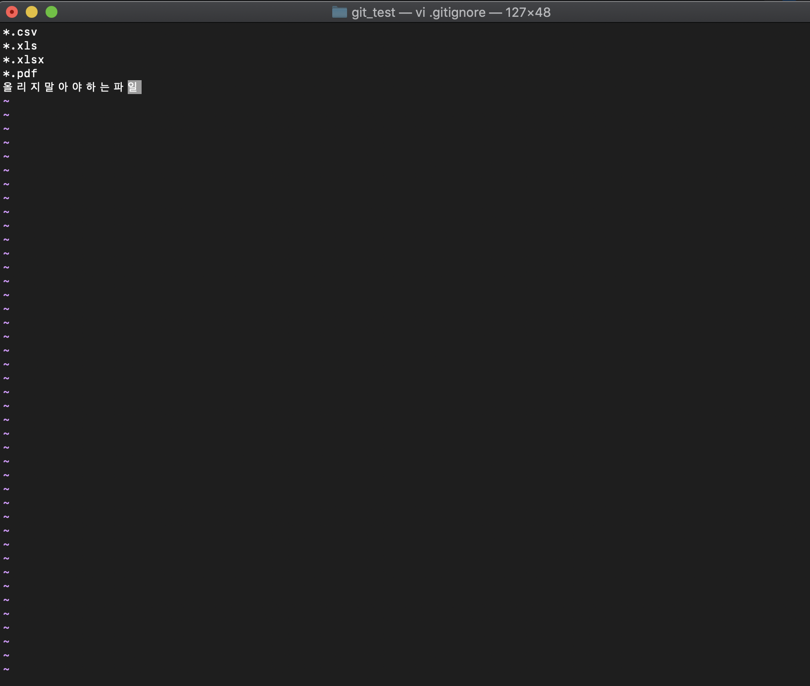 올리지말아야하는파일 : 올리지않을 파일명을 정확히 기입하면 해당 파일만 git에 올리지 않는다