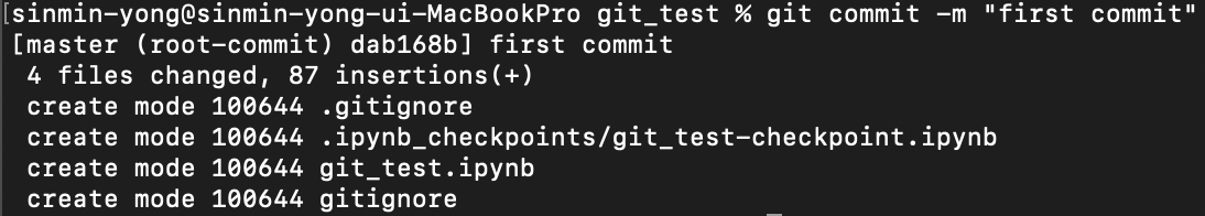 이름과 이메일은 환경설정할 때의 이름과 이메일이므로 실제 깃헙 메일과 이름과는 관계없으니 원하시는 이름과 이메일로 적어주시면 됩니다!