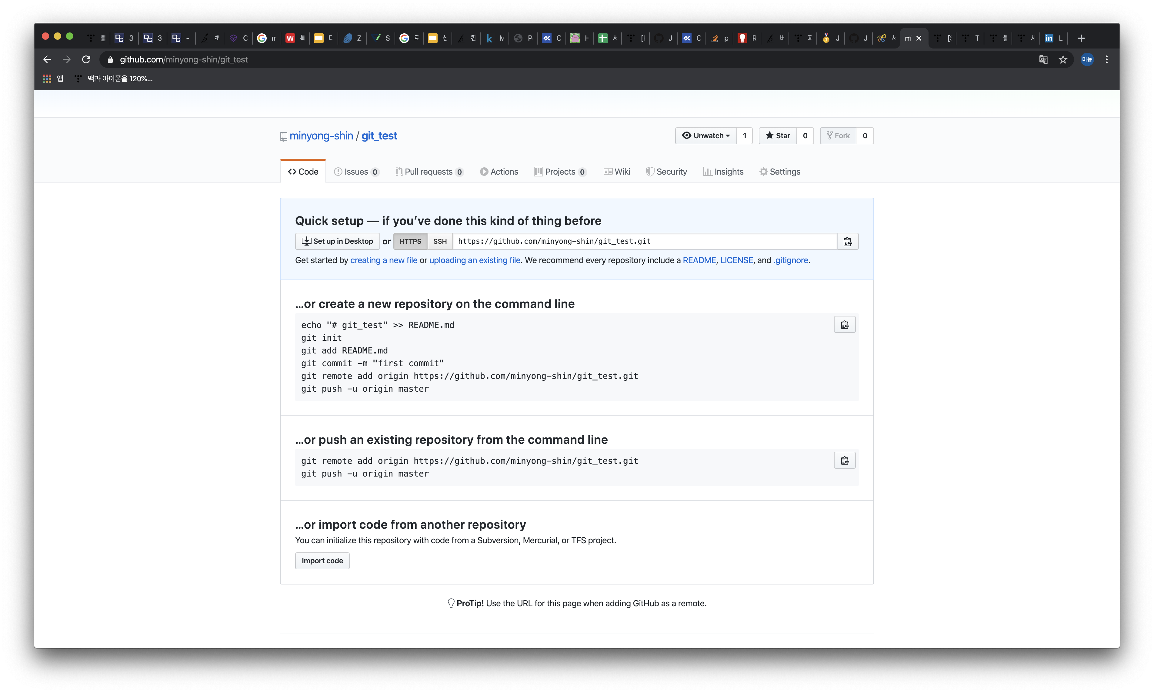 경로로 이동하셨나요? cd명령어로 연동할 파일들이 있는 폴더로 이동하시면 됩니다. 저 같은 경우에는 git_test폴더로 이동하면 되겠죠?