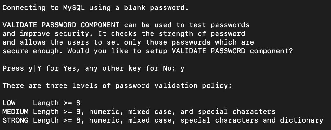 1. Would you like to setup VALIDATE PASSWORD component? (비밀번호 설정 가이드)