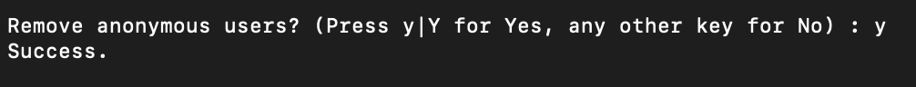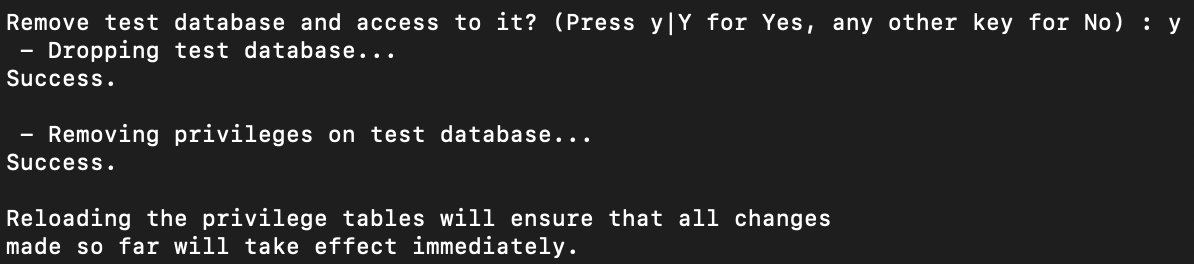 n : 테스트 DB 유지5. Reload privilege tables now? (변경된 권한을 테이블에 적용)