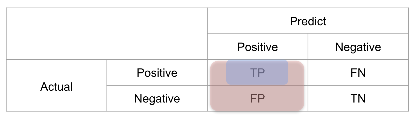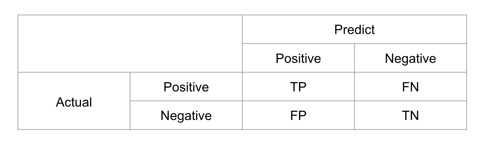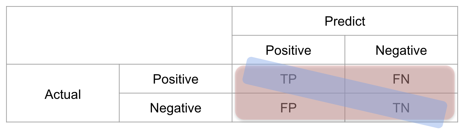 이번엔 각각의 교차된 지표에 대해서 설명드리겠습니다. 이 부분은 앞의 단어를 성공/실패 뒤의 단어를 긍정예측/부정예측 이라고 생각하시면 생각하시기 쉬울겁니다!