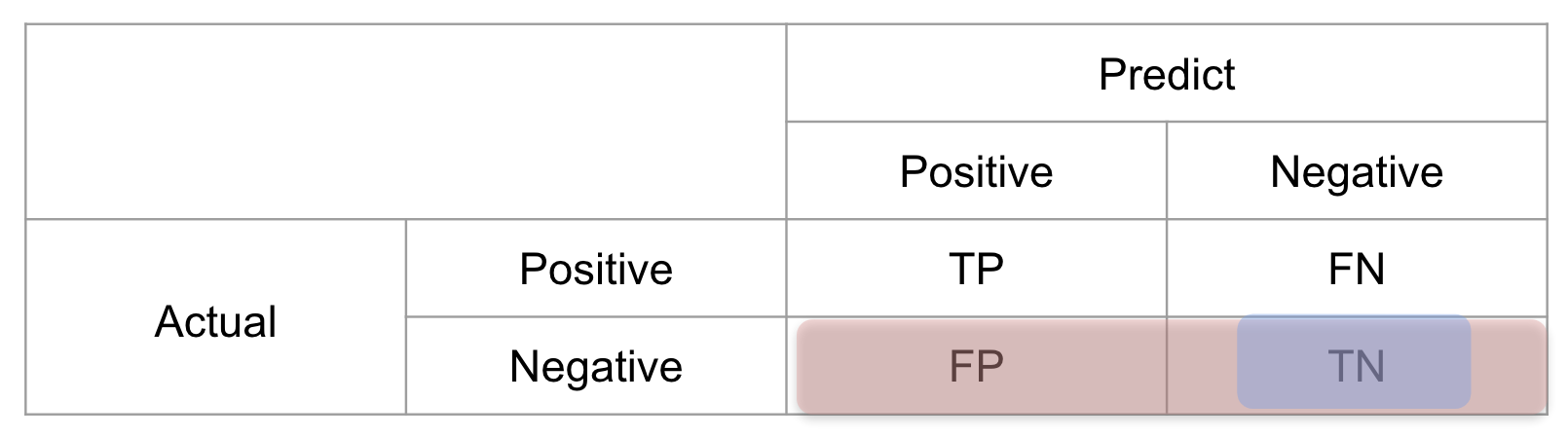 - FP(False Positive) : 긍정예측을 실패 즉, 환자라고 예측했지만 비환자임