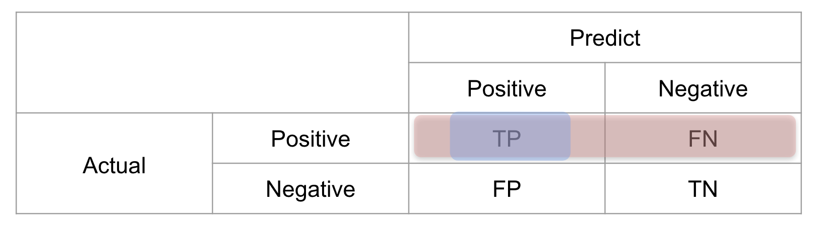 - TP(True Positive) : 긍정예측을 성공 즉, 환자라고 예측해서 실제 환자임을 맞춤