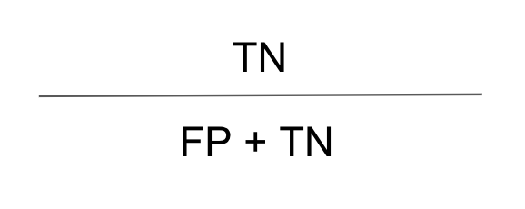 세번째는 Specificity입니다. 실제로 음성인 케이스에 음성을 얼마나 잘 예측했는지에 대한 지표이며 수식은 다음과 같습니다.