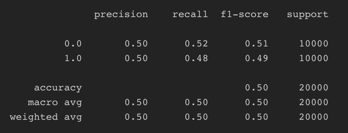 물론 제가 사용한 분포가 같은 데이터들은 정수형(5~9점 척도) 변수가 많은 데이터셋이였는데 이따가 시각화로 보여도 드리겠지만 그 분포가 거의 같기 때문에 모델도 어떻게 구분해야할지 모르는 상태인 0.5에 수렴하는 것을 알 수 있습니다.